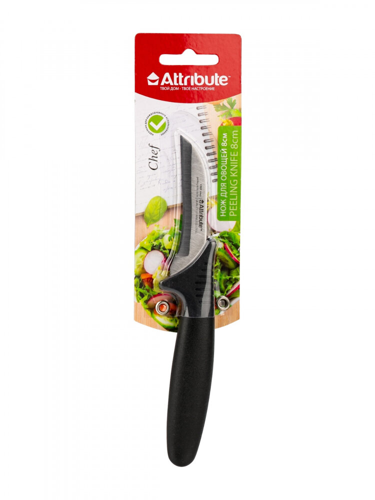 Нож для чистки овощей Attribute "CHEF", 8см, лезвие из нержавеющей стали