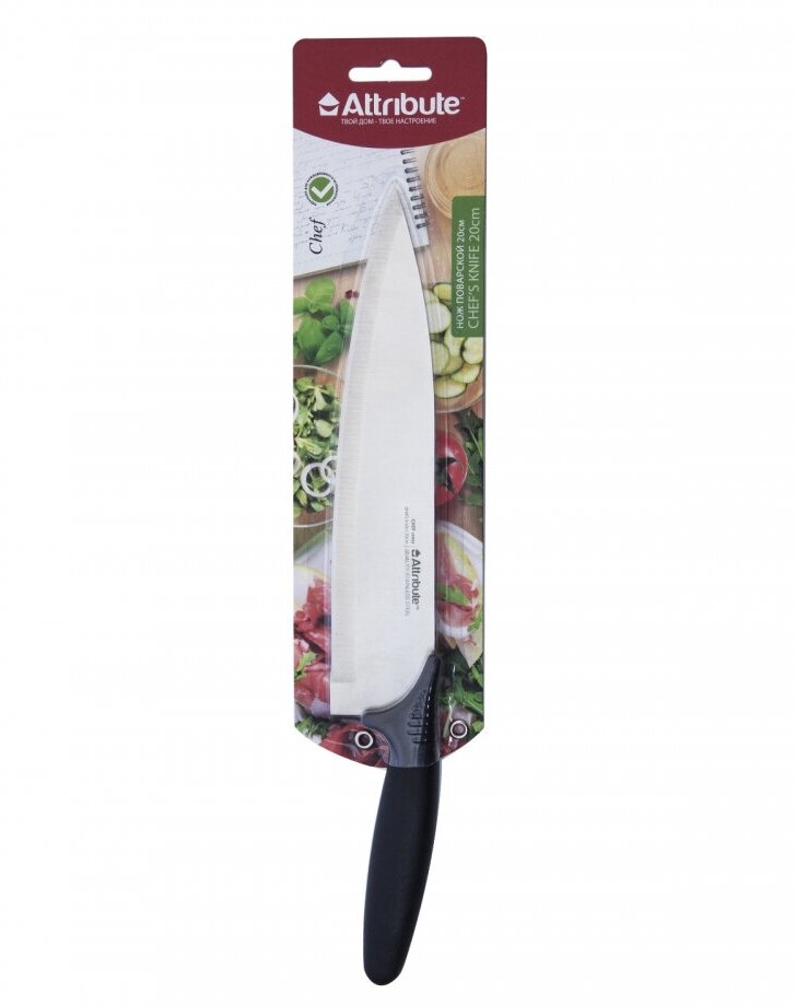 Нож кухонный поварской ATTRIBUTE "CHEF" 20см, нержавеющая сталь/пластик