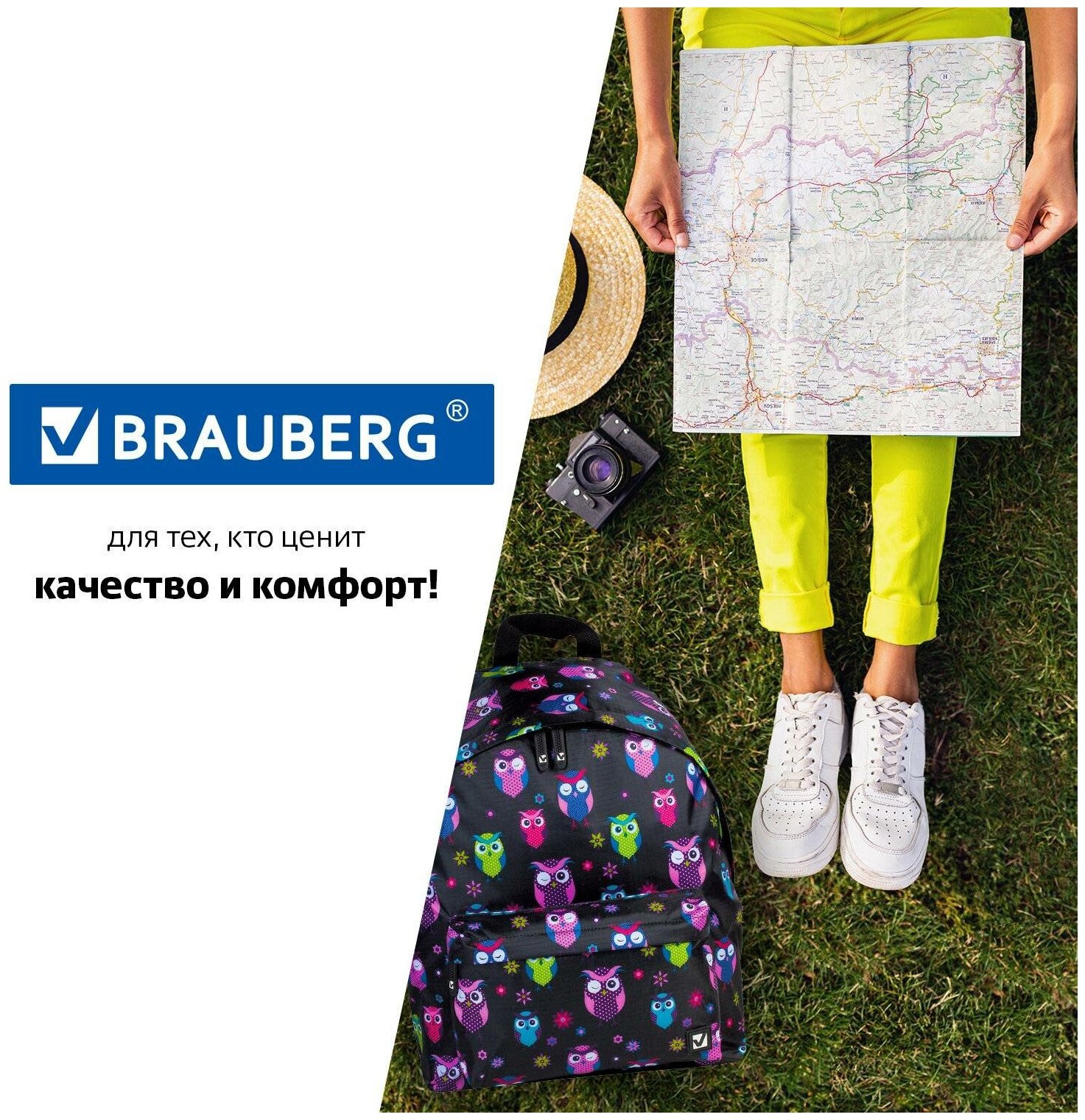 Рюкзак BRAUBERG, универсальный, сити-формат, черный, Совы, 20 литров, 41х32х14 см, 225361 И 4606227125777