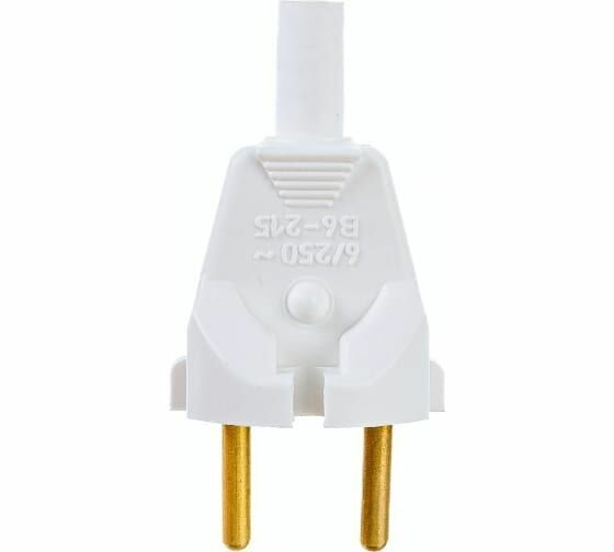 Bylectrica вилка В6-215 6А 250В (полистирол, латунь, плоская, белая, с кембриком) Минск
