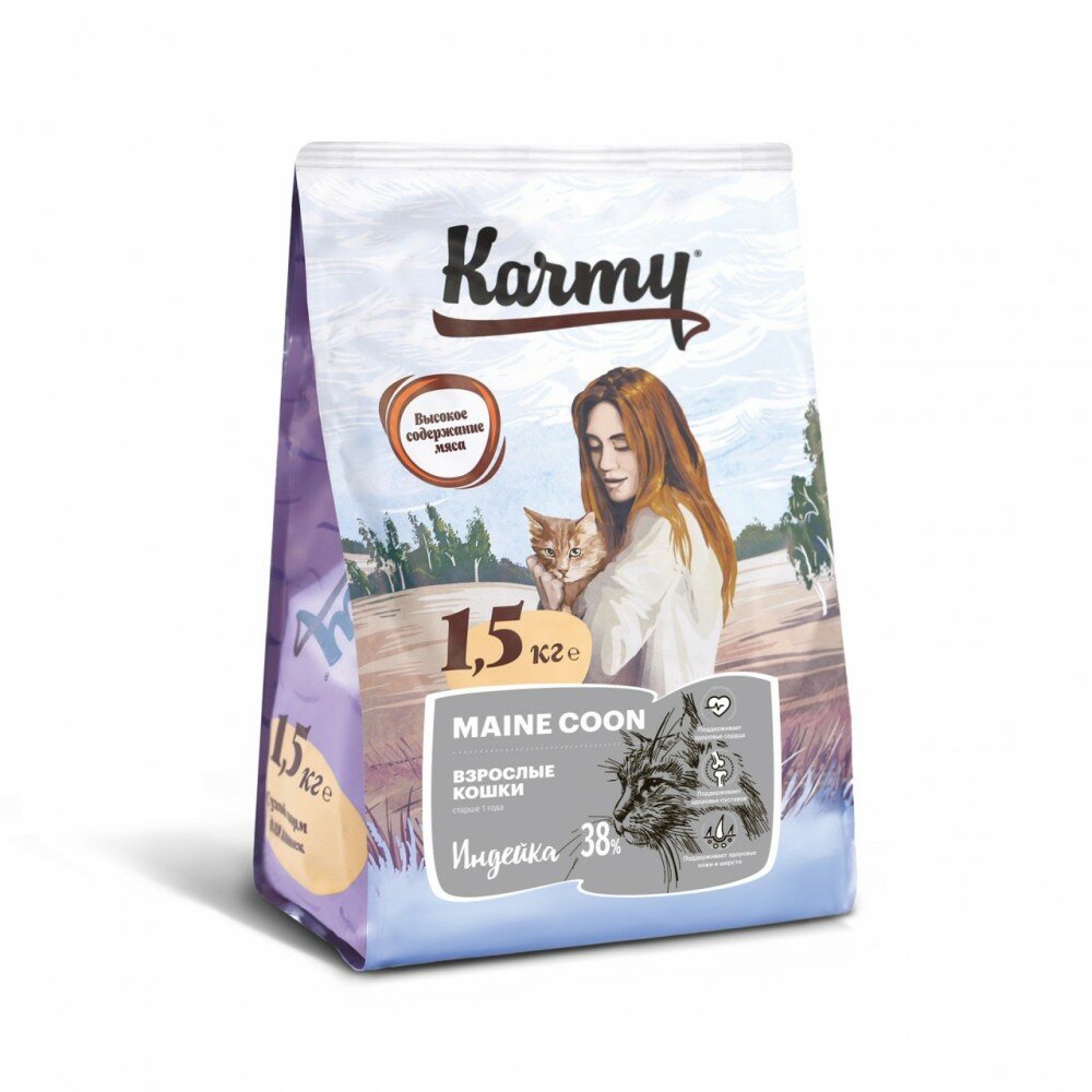 Корм сухой Karmy Main Coon Adult Индейка для взрослых кошек старше 1 года, 1.5 кг