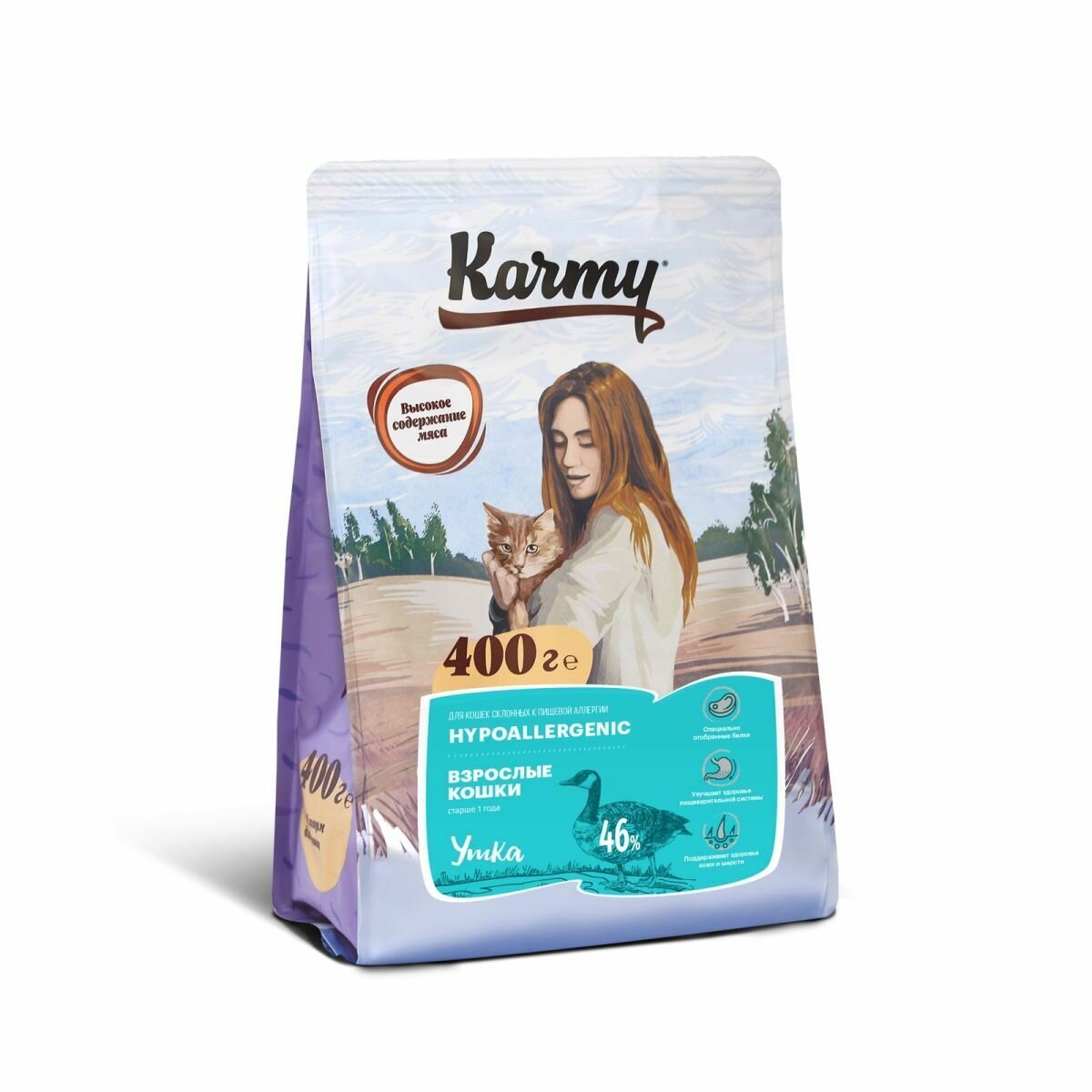 Karmy Hypoallergenic Утка корм для аллергичных кошек от 1 года, 0,4 кг