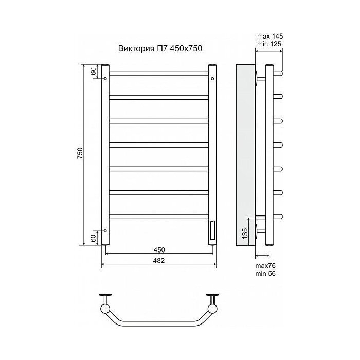 Terminus Полотенцесушитель электрический Terminus Виктория П7 450x750, ширина 48.2 м, высота 75 см, черный RAL 9005 матовый