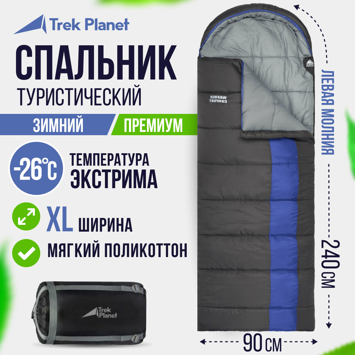 Спальный мешок TREK PLANET Warmer Comfort, зиминй, левая молния, серый, синий
