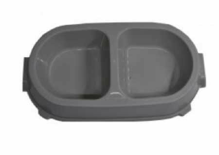 Миска для животных двойная, нескользящая, пластиковая, серая, 0,45 л