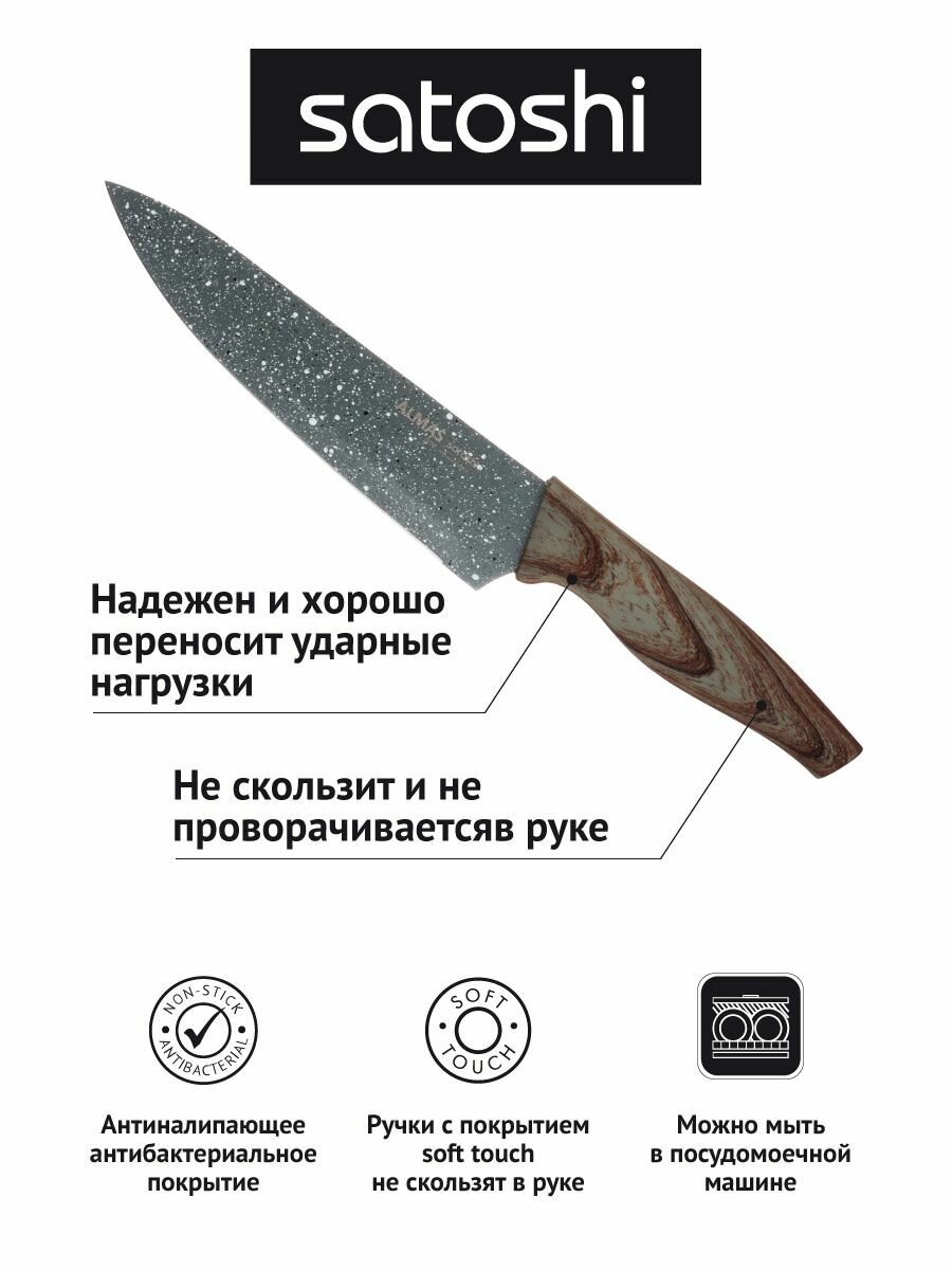 Нож кухонный 20см шеф SATOSHI Алмаз антиналип. покр. (нержавейка) интересное: