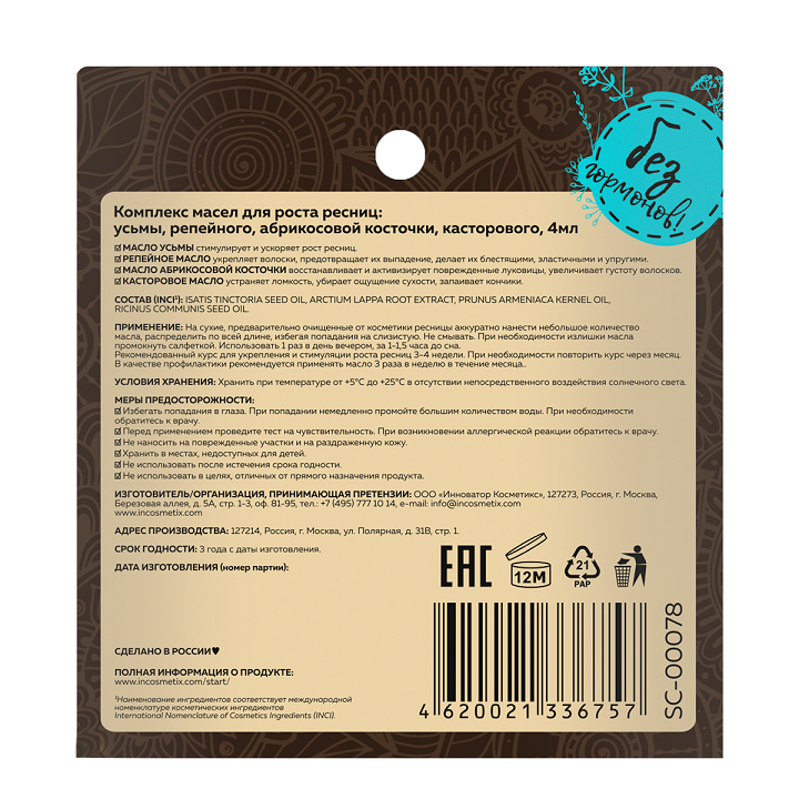 СохранитьКомплекс масел для роста ресниц: усьмы, репейного, абрикосовой косточки, касторового, Innovator Cosmetics 4мл интересное: