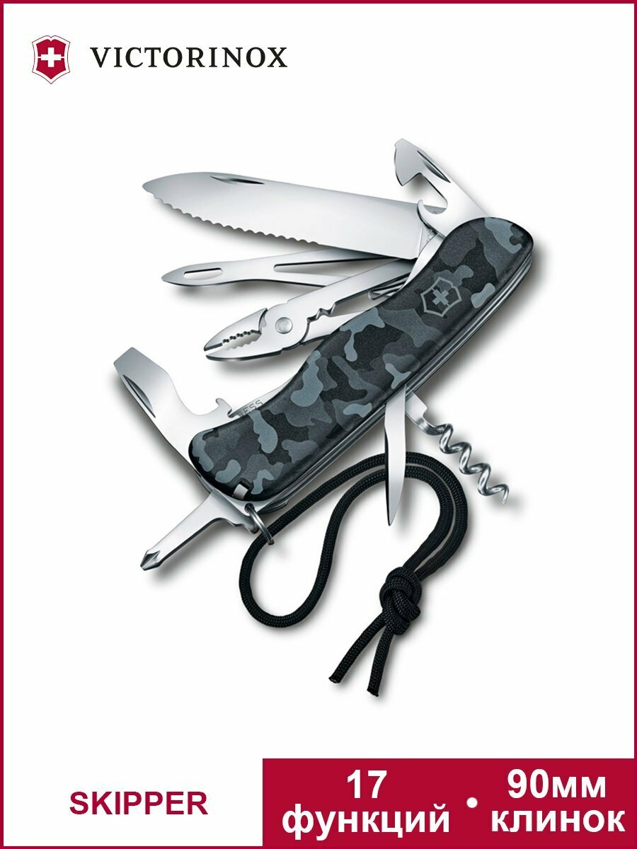 Купить Нож перочинный VICTORINOX Skipper Navy Camouflage, 111 мм, 17 фнк, с фиксатором, серо-синий камуфляж