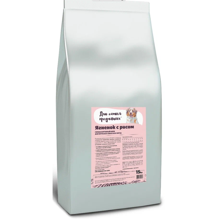 Для самых преданных, гипоаллергенный корм Д/собак всех пород, ягненок С рисом 15 кг