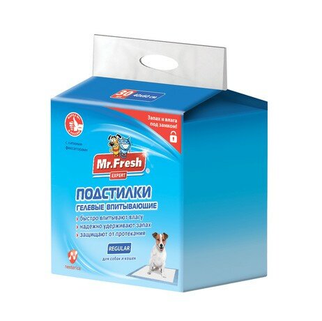 Mr.Fresh Expert Regular Подстилки гелевые впитывающие для собак и кошек, размер 40*60 см, 30 шт