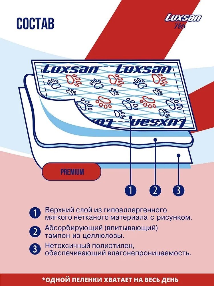 Впитывающие пеленки для животных Luxsan PETS Premium с рисунком 60х60, 20 шт