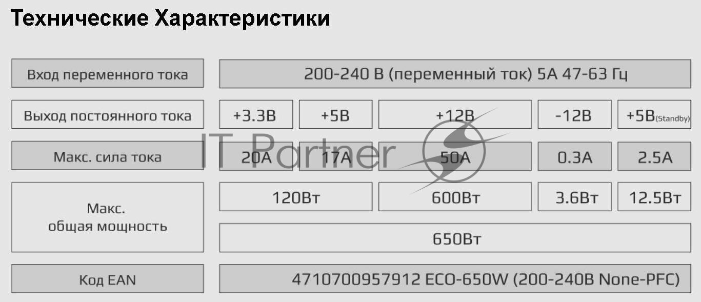 Блок питания ATX 650W ECO-650 4710700957912 AEROCOOL