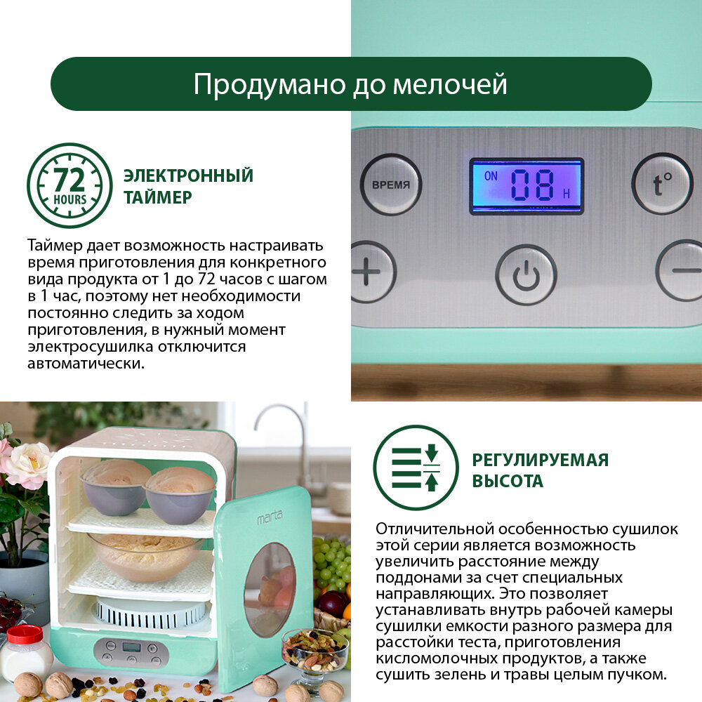 MARTA MT-1956 9 поддонов светлая яшма сушилка д/фруктов,овощей интересное: