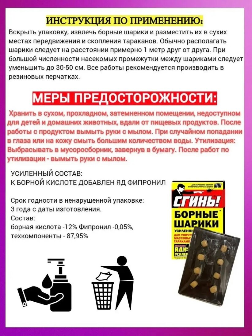 Ниже Вы можете прочитать отзывы на Борные шарики от тараканов Дохлокс "Сгинь №56", 8 шт., ознакомится с подробными характеристиками, посмотреть интересные обзоры и фотографии на Борные шарики от тараканов Дохлокс "Сгинь №56", 8 шт..