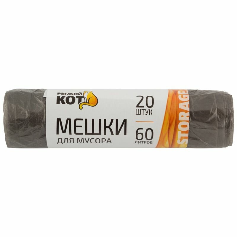 Мешки для мусора (310105) Рыжий кот 20шт/рул. 60л полиэтилен черн.