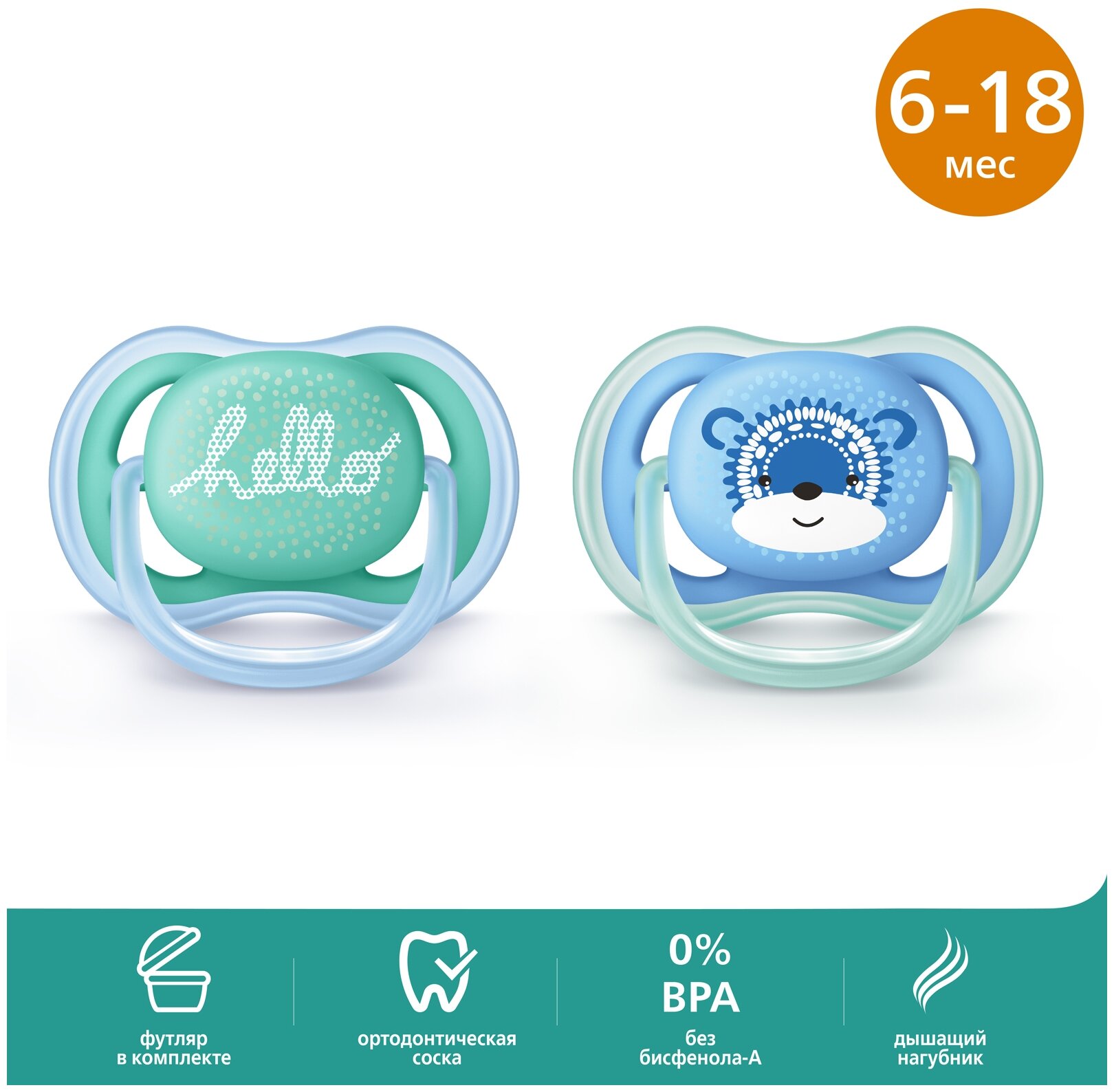 Пустышки Philips Avent 6-18 М с рисунком, 2 шт, Ultra Air. Для мальчика