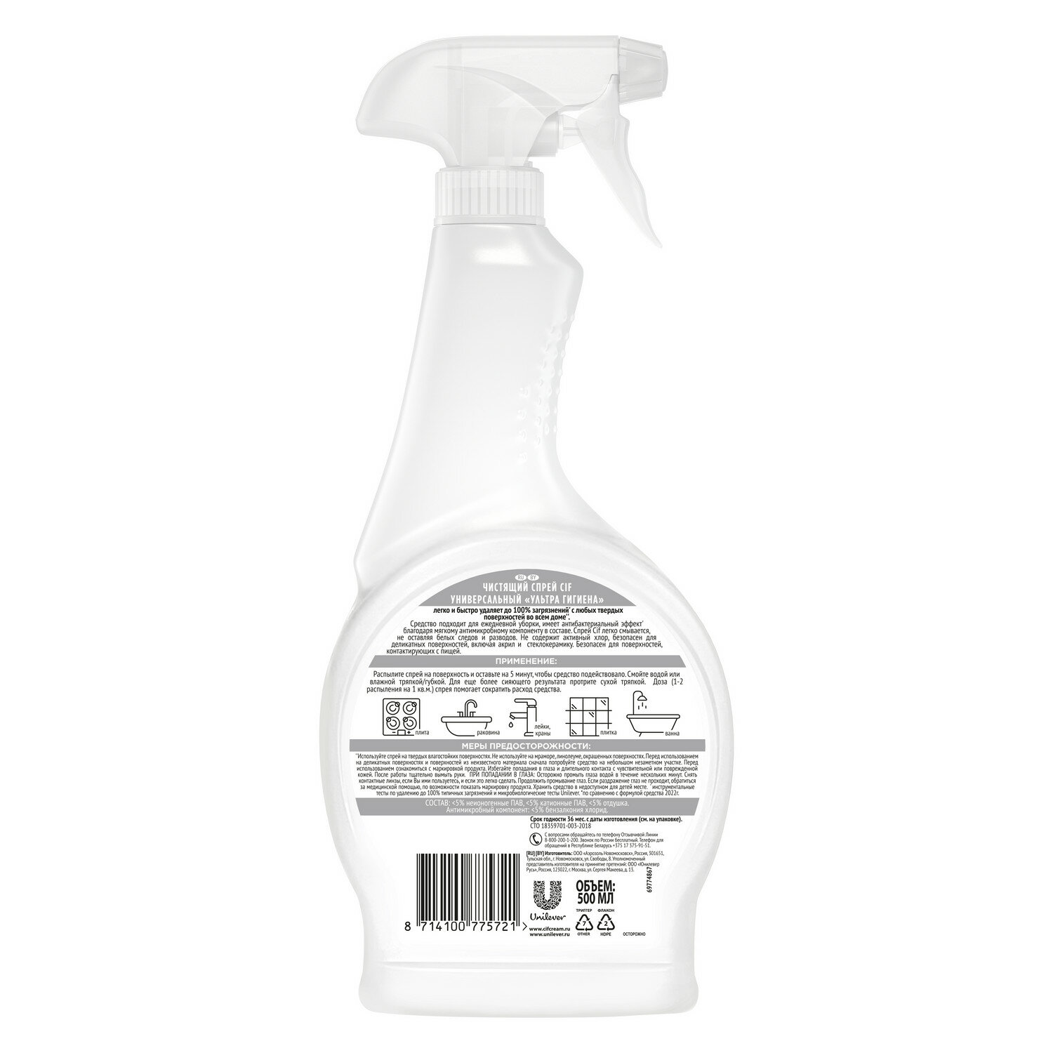 CIF Спрей Ультра гигиена, универсальное чистящее средство, без хлора, антибактериальный 500 мл