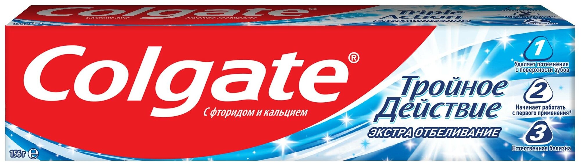 Colgate Зубная паста Тройное действие Экстра отбеливание для восстановления естественной белизны зубов 100 мл - 1 шт