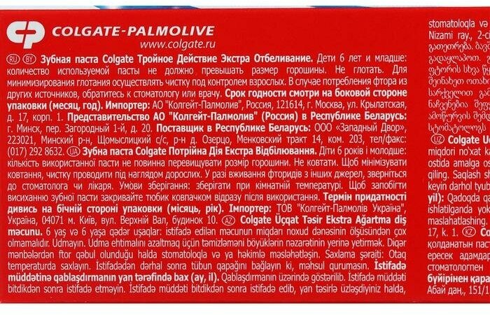 Colgate-Palmolive Colgate Тройное Действие Экстра Отбеливание зубная паста 100 мл