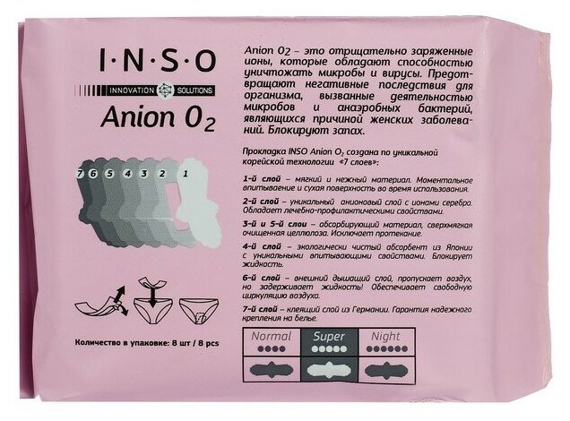 INSO Прокладки гигиенические Anion O2 Super 5 капли 8 шт