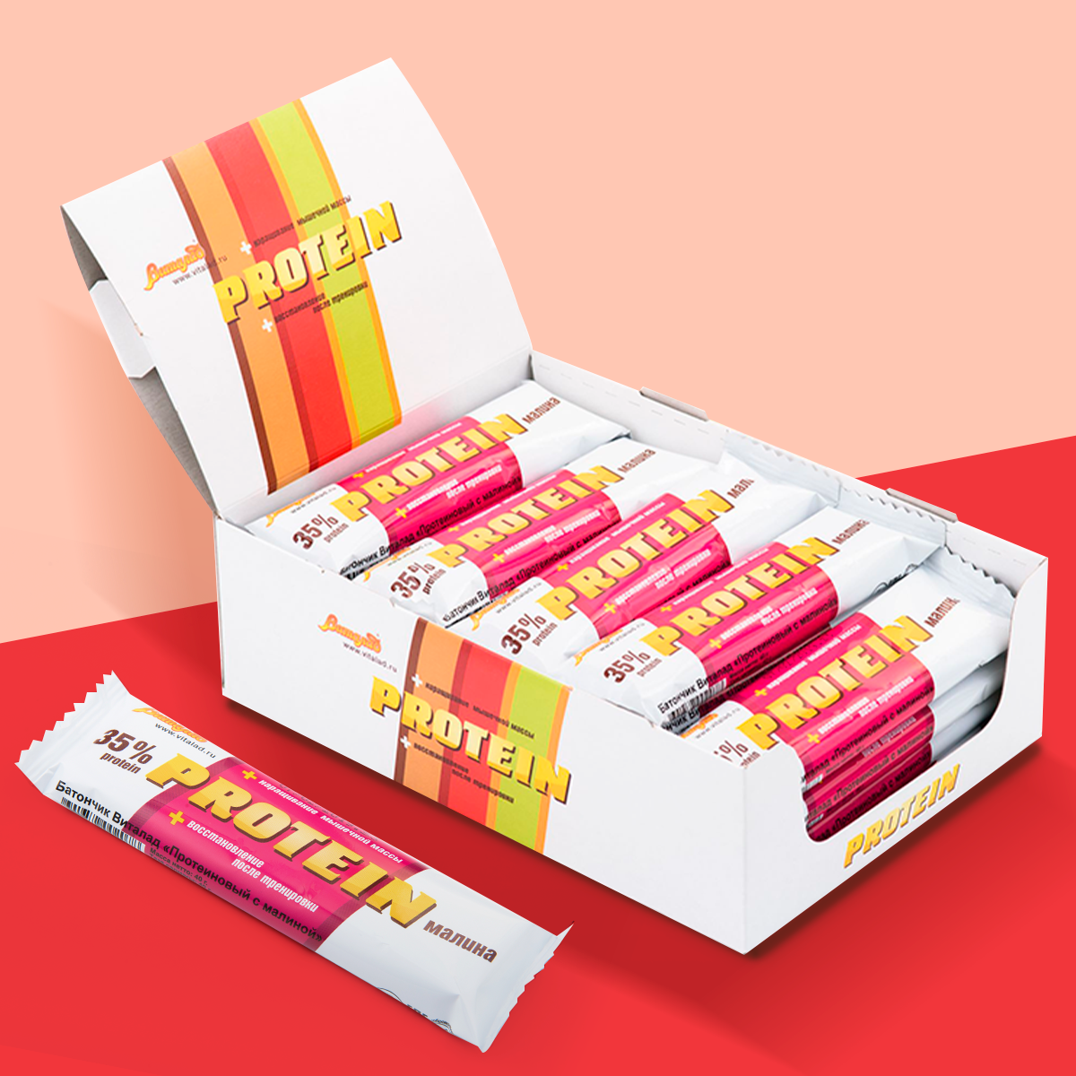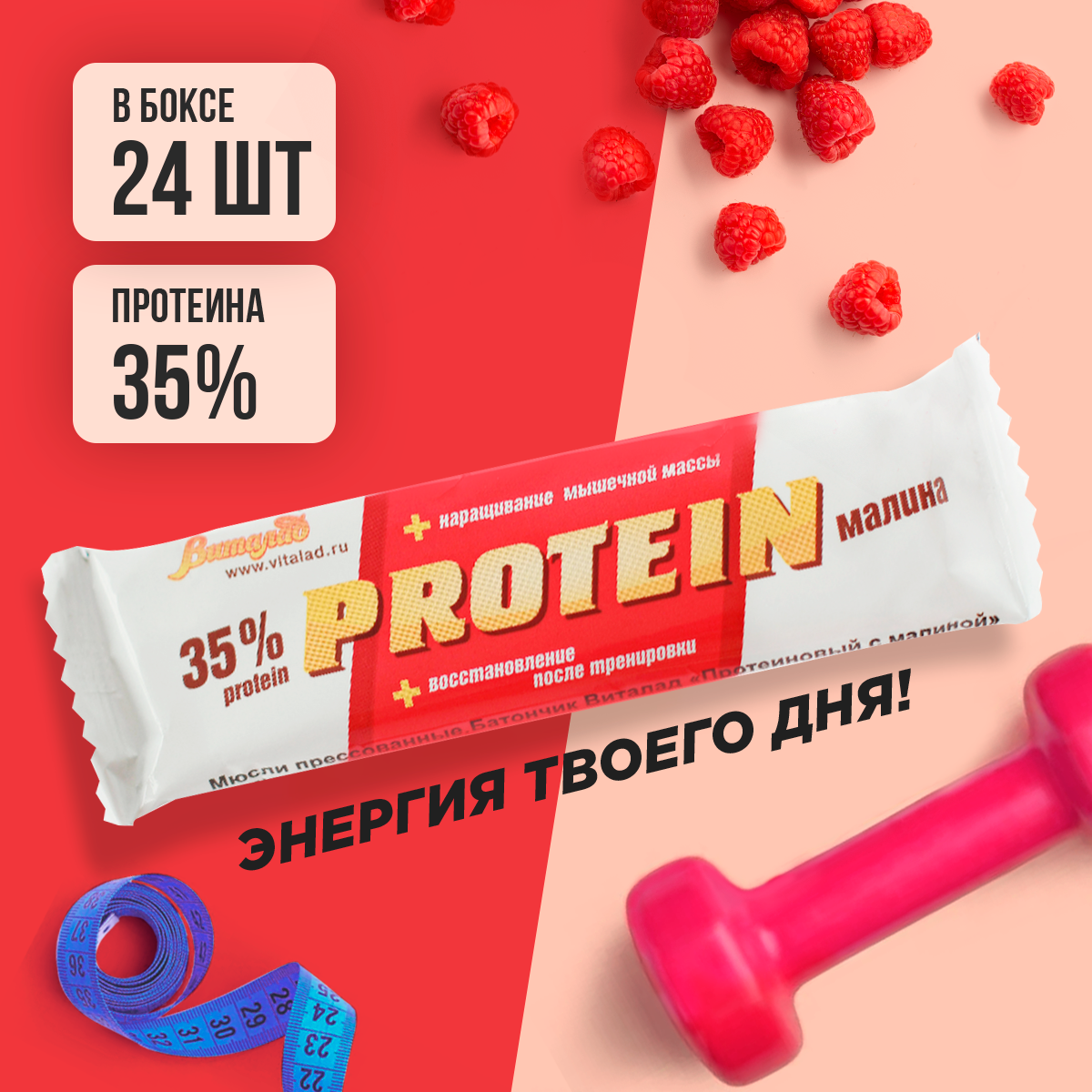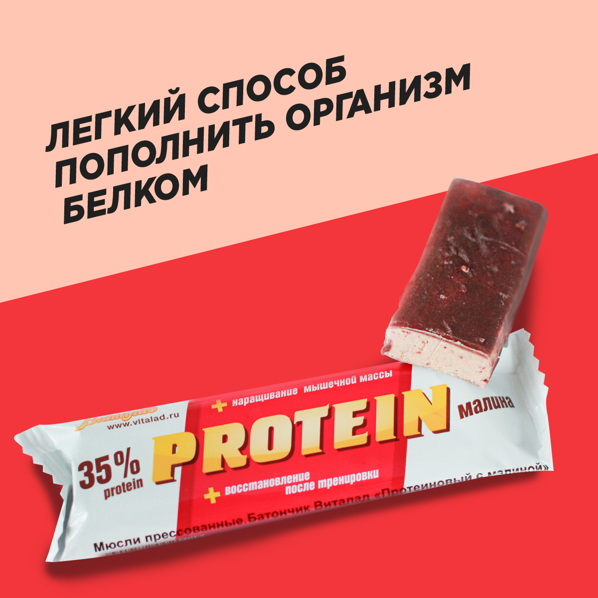 Протеиновые батончики Виталад с малиной, 40 гр, шоу-бокс 24 шт. интересное: