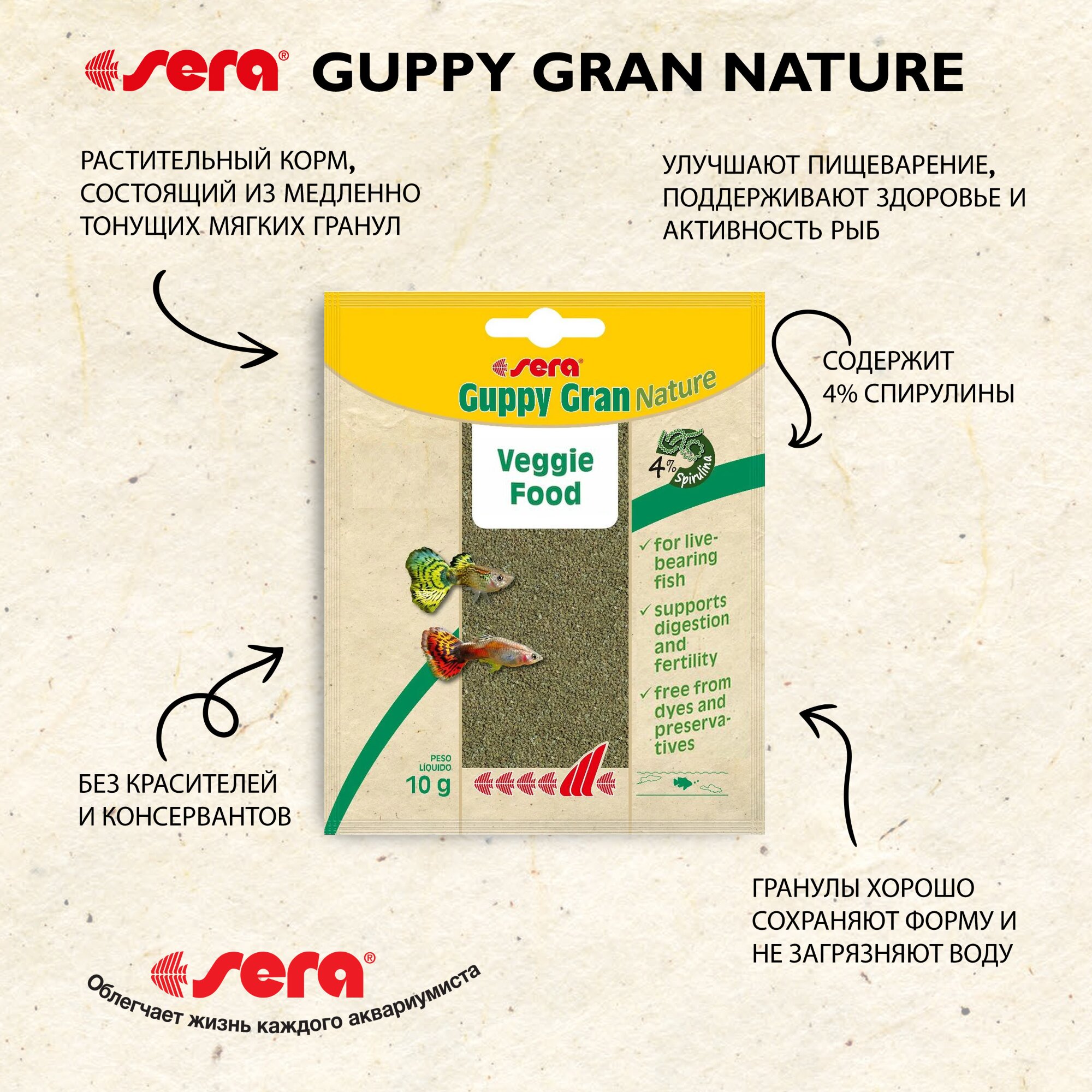 Sera Растительный корм Sera Guppy Gran для рыб, гранулы, гранулы 10 г