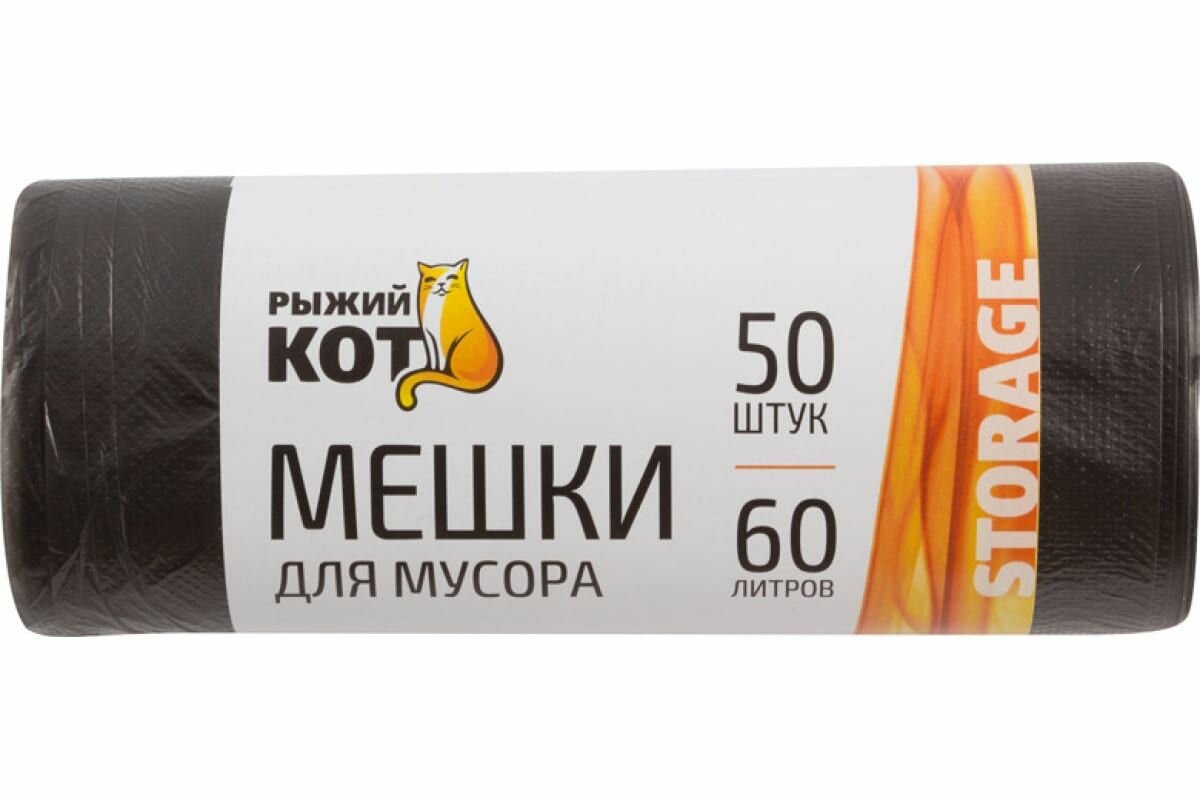 Мешки для мусора Рыжий кот, 6 мкм, 60 л, 50 шт, черные