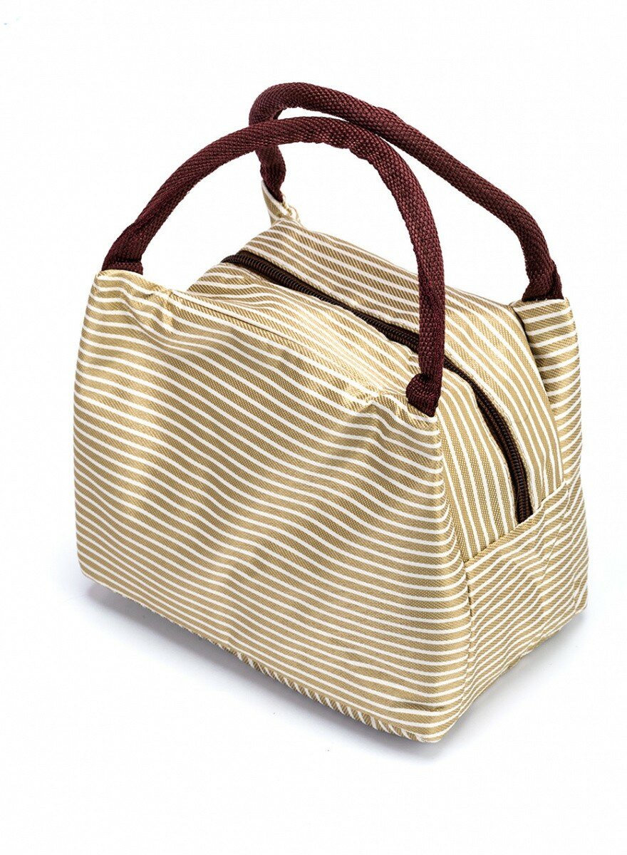 Термосумка для ланч-бокса в полоску «горячий обед» коричневая Bradex TK 0265