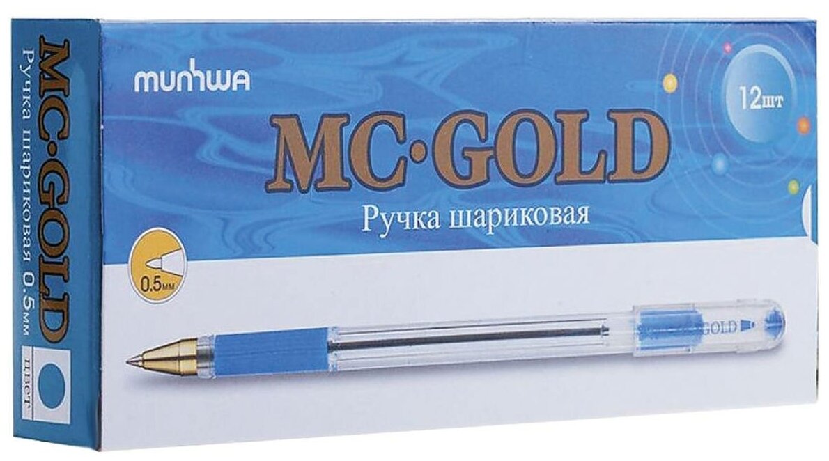 MunHwa Ручка шариковая MC Gold, 0.5 мм (BMC-01/02/03/04/10/12), BMC-02, cиний цвет чернил, 1 шт.