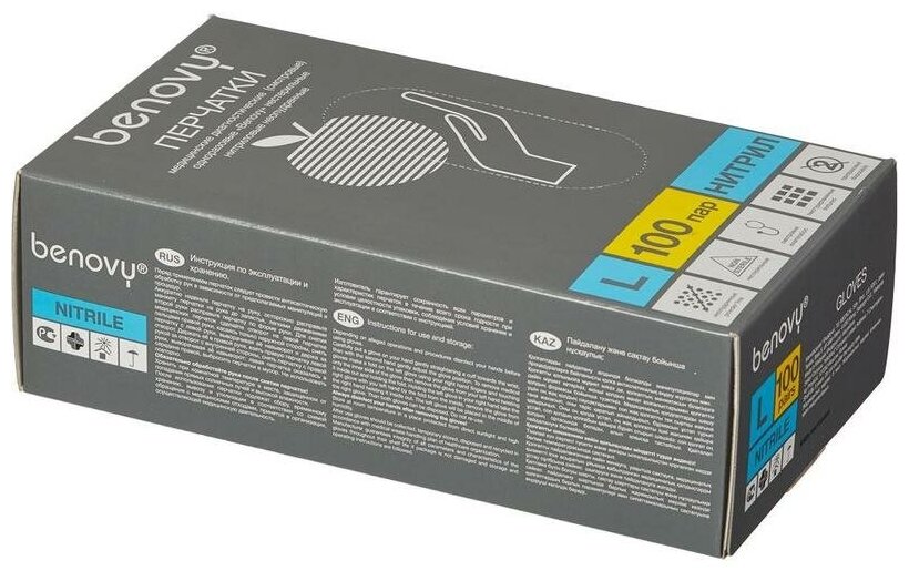 Перчатки медицинские смотровые Benovy нитрил, нестирильные, неопудренные (L) 100 пар/уп, голубой