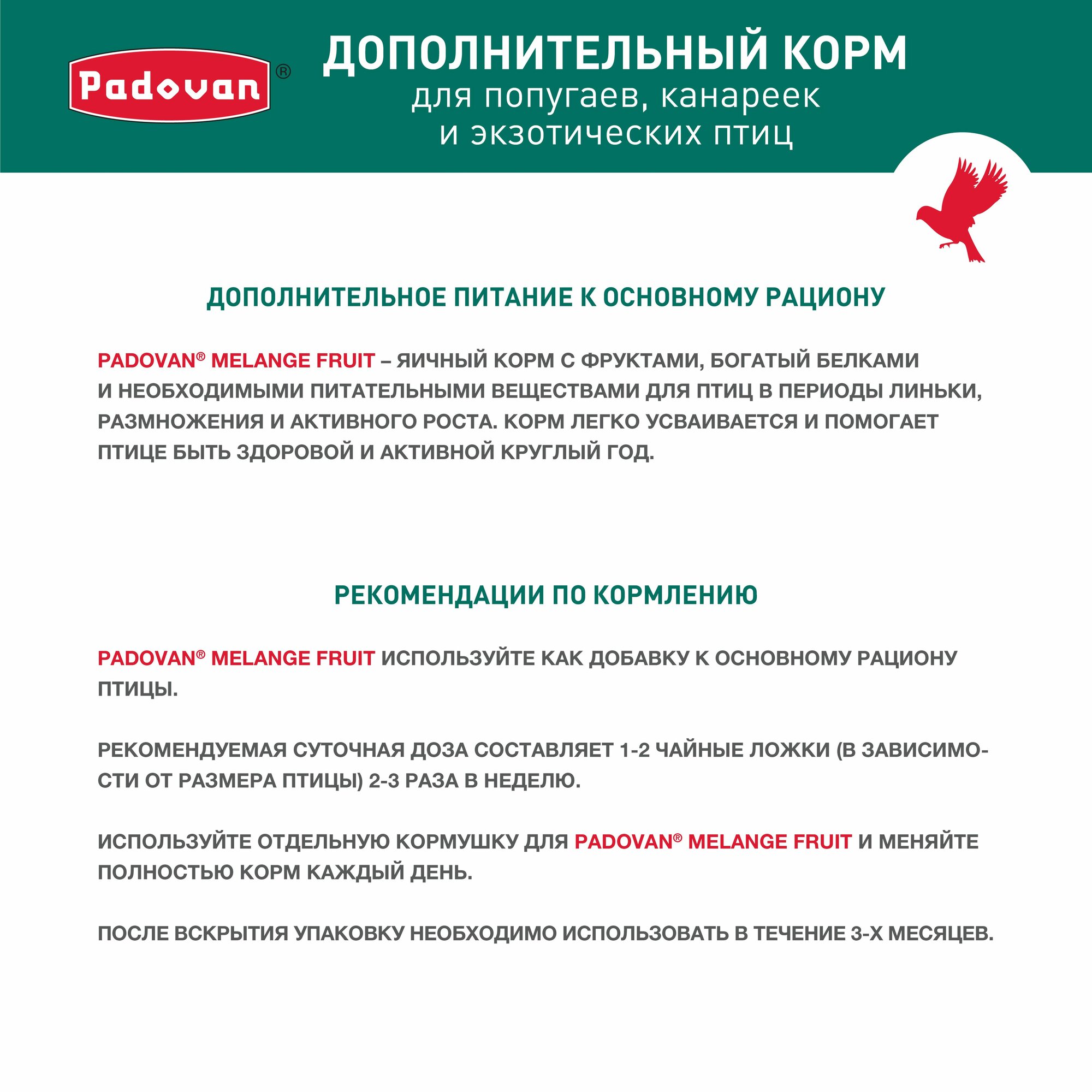 СохранитьКорм Padovan для декоративных птиц при линьке MELANGE Fruit фруктово-яичный 300 г интересное: