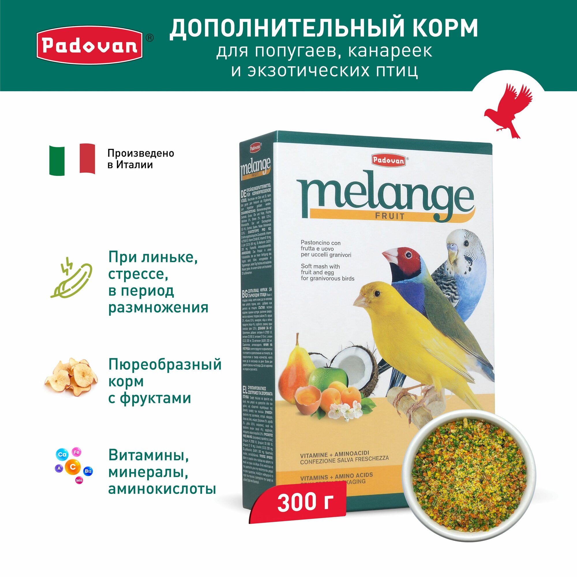 Купить Корм Padovan для декоративных птиц при линьке MELANGE Fruit фруктово-яичный 300 г