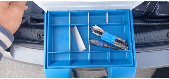 | Отзыв: | Вклеил тонкий параллон. Уложил шурик с набором бит, головок и сверл, болгарку с несколькими дисками на 125, китайский псевдо- лазерный уровень с рулеткой, угольник, пассатижи...и еще места немного осталось. Очень удобно! А по цене в 3 раза дешевле оригинала, от которого и не сразу отличишь... |