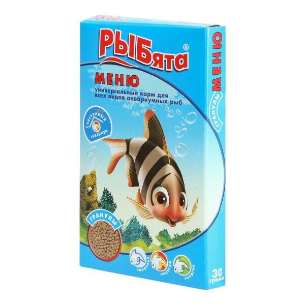 Корм Рыбята меню универсальный для всех видов аквариумных рыб в гранулах, 30 г