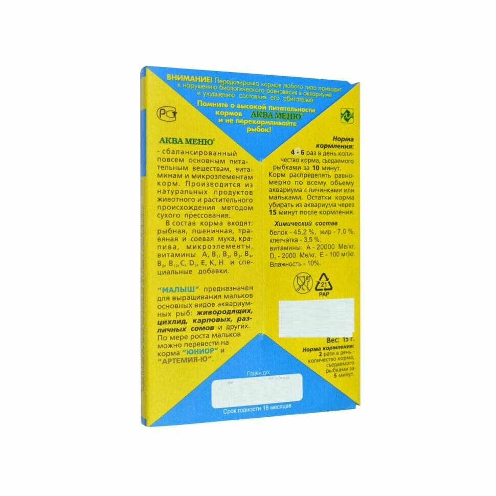 Аква Меню Малыш универсальный корм для выращивания мальков основных видов аквариумных рыб 15 гр