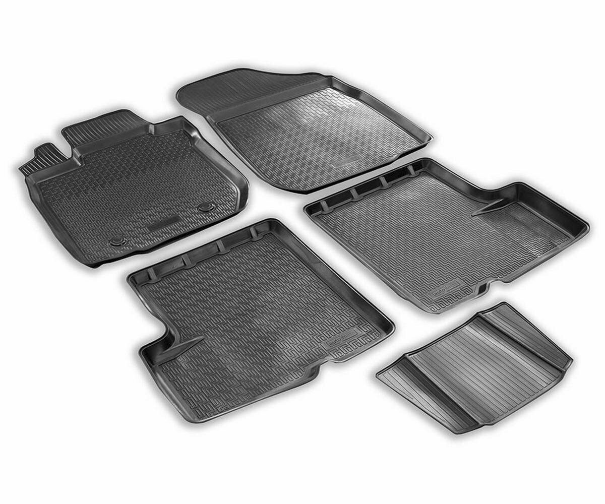 Комплект автомобильных ковриков в салон Renault Logan I седан 2004-2015, полиуретан, с крепежом, 5 шт.
