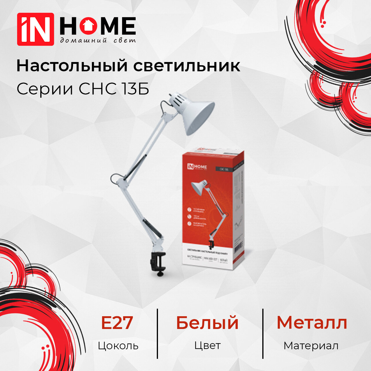 Лампа офисная IN HOME СНС-13Б, E27, 60 Вт, белый 4690612012728