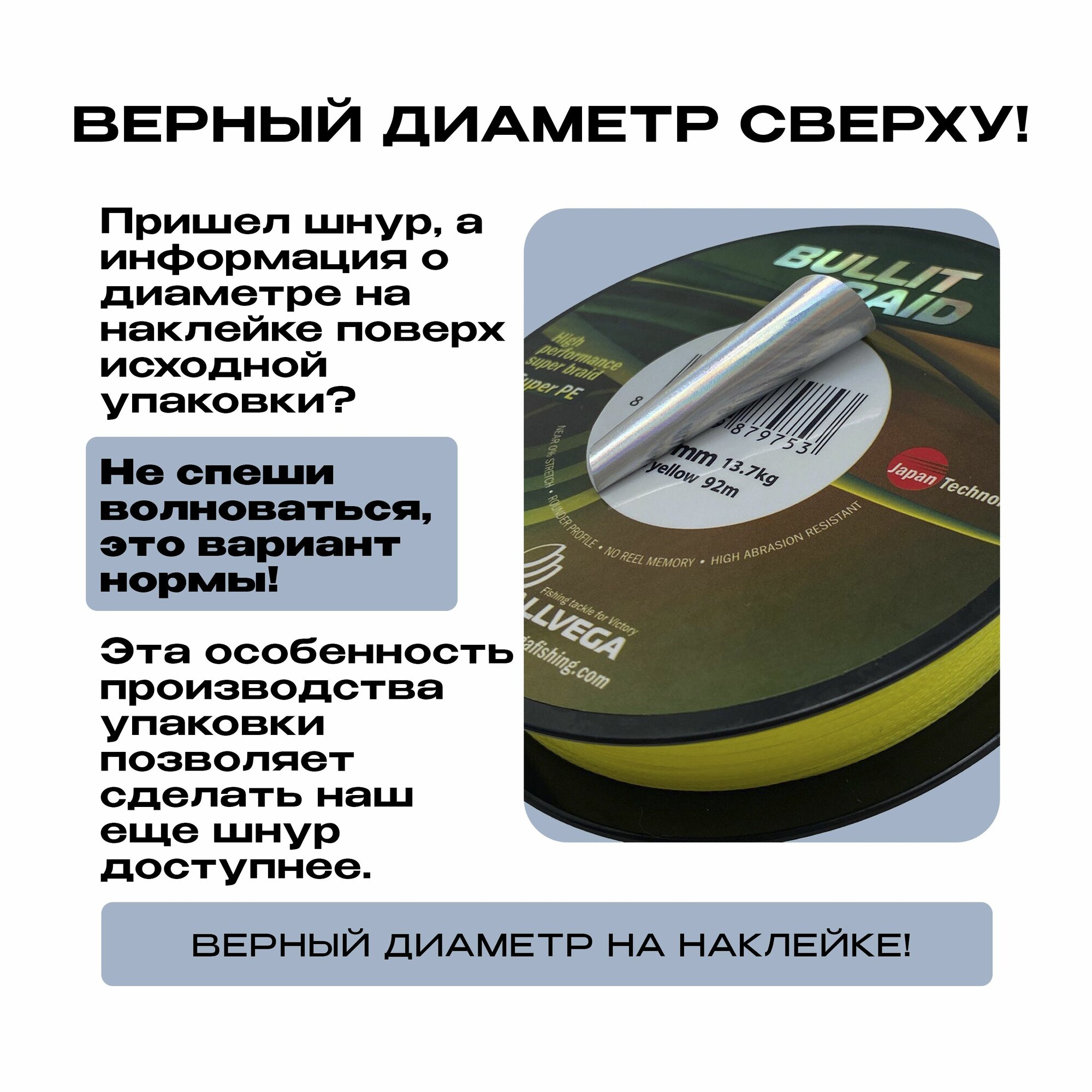 Плетеный шнур ALLVEGA Bullit Braid 92м 0,12мм 7,1кг (ярко-желтая)