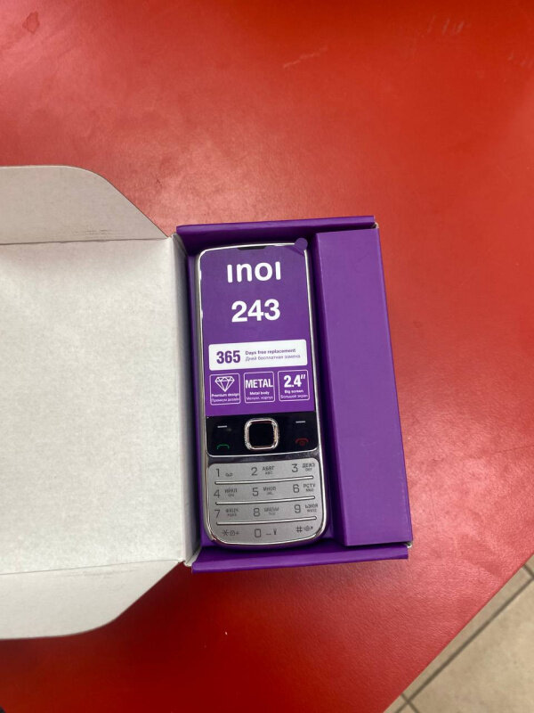 Ниже Вы можете прочитать отзывы на Сотовый телефон INOI 243 серебристый (2*SIM, 2,4", 1000 мАч, micro SD до 16 Гб, 0,1Мп, FM, BT), ознакомится с подробными характеристиками, посмотреть интересные обзоры и фотографии на Сотовый телефон INOI 243 серебристый (2*SIM, 2,4", 1000 мАч, micro SD до 16 Гб, 0,1Мп, FM, BT).