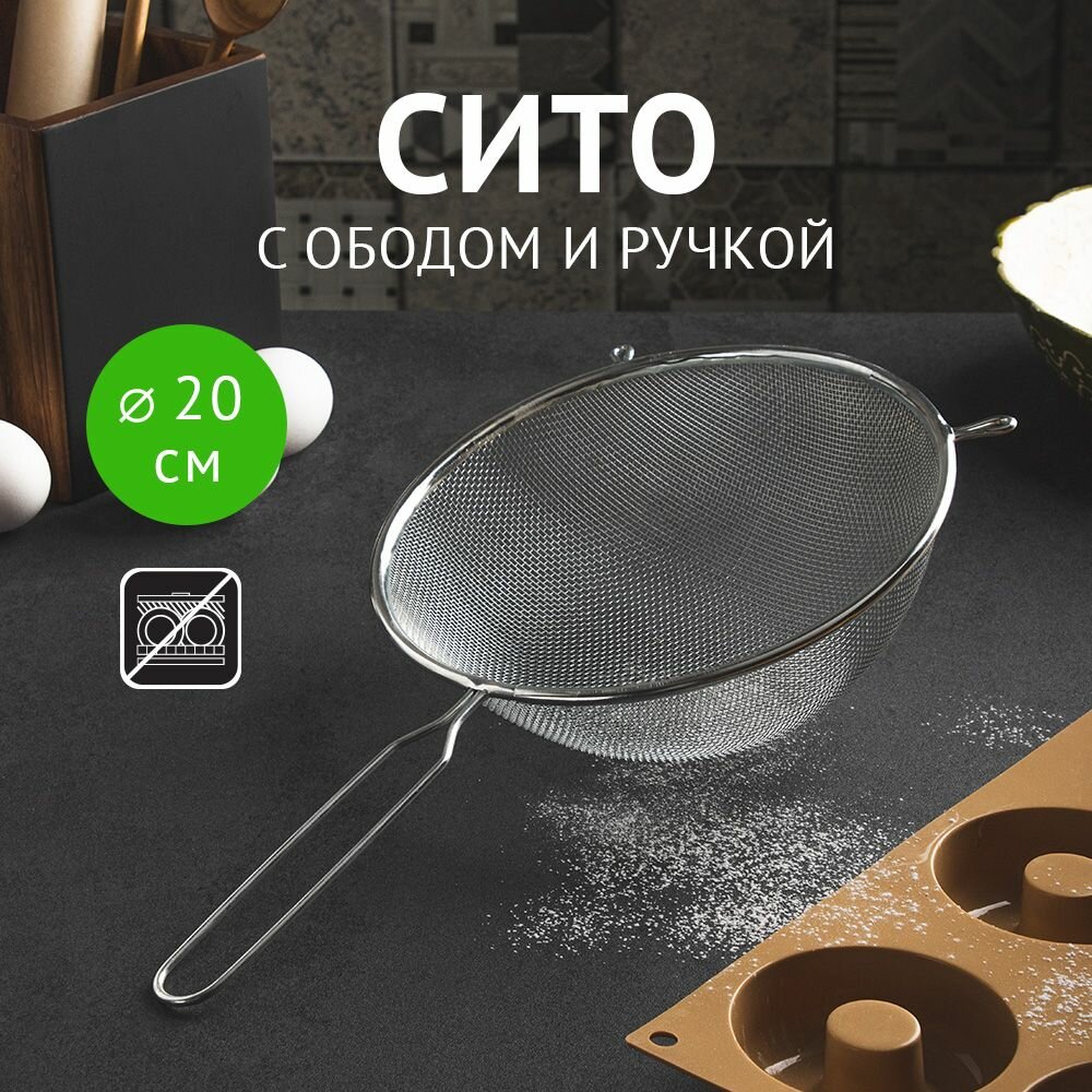 Сито для муки с ободом и ручкой 20 см, металл