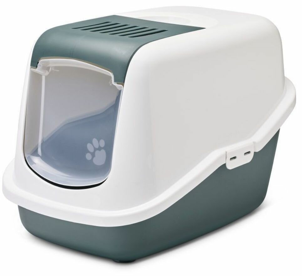 Туалет для кошек Savic "Nestor", закрытый бело-зеленый, 56х39х38,5 см
