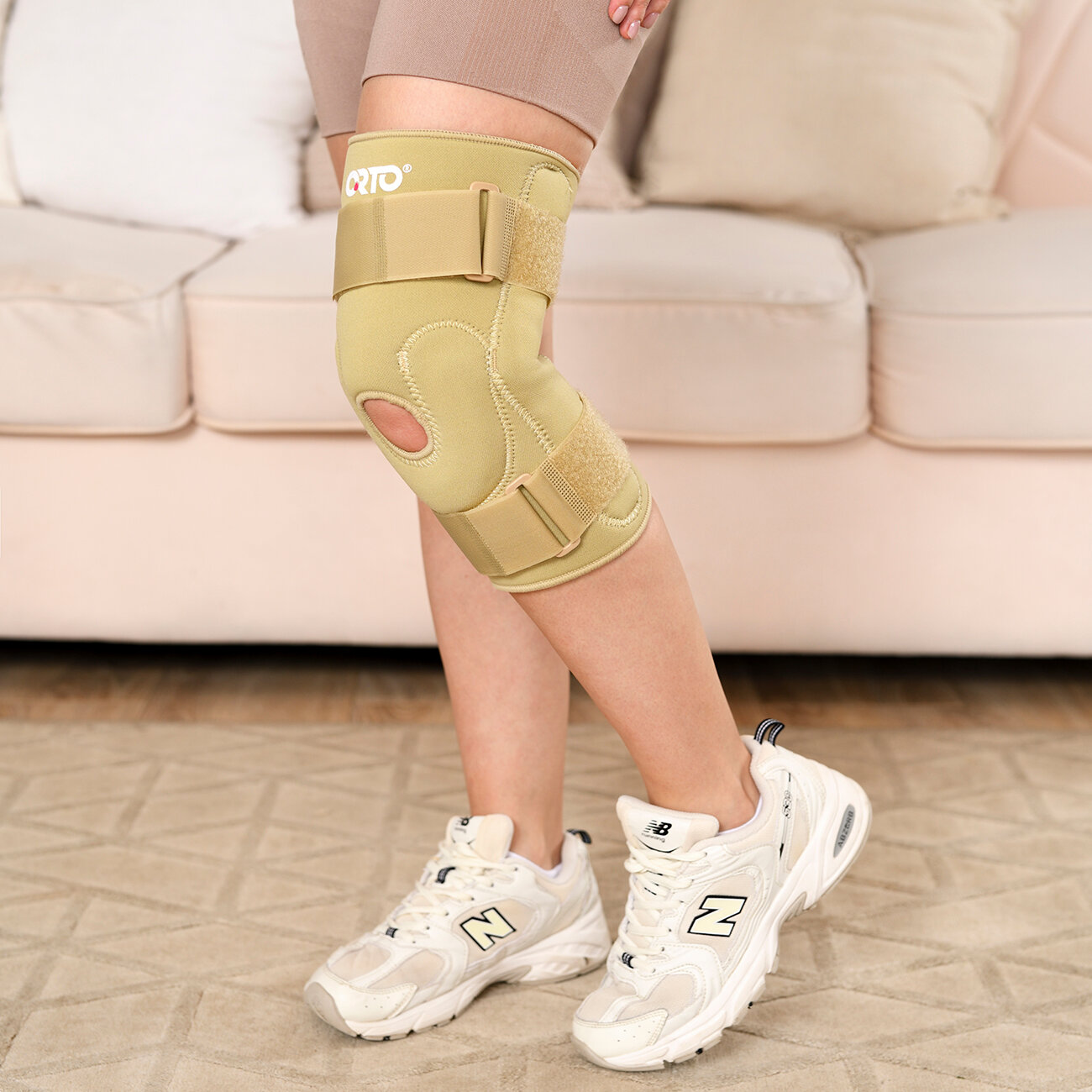 Бандаж на коленный сустав Orto NKN-139 с шарнирами, стабилизирует коленную чашечку массаж и согревание, бежевый (M, Универсальные)