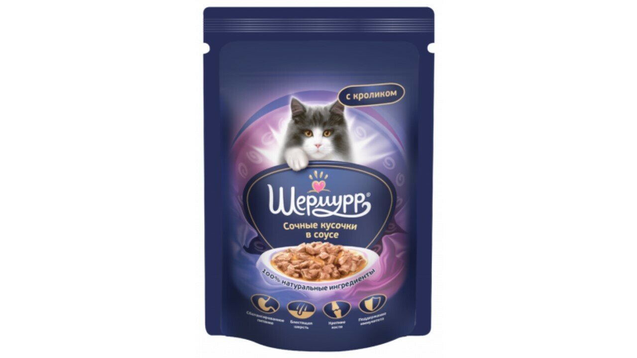 Шермурр консервы для взрослых кошек Соус с кроликом 85г интересное: