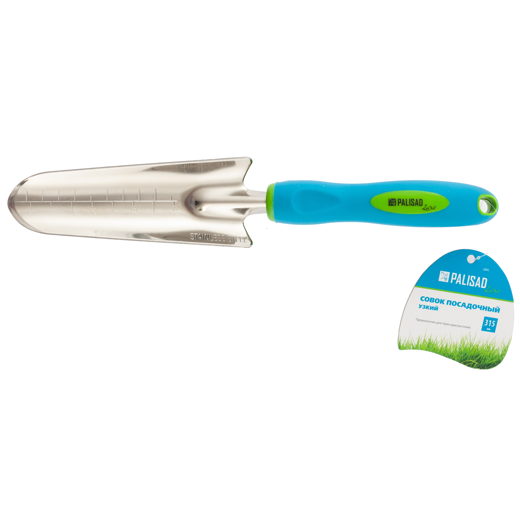 Купить Совок посадочный узкий Palisad PREMIUM PLUS 60х315 мм, нерж. сталь, двухкомпонентная рукоятка 62052