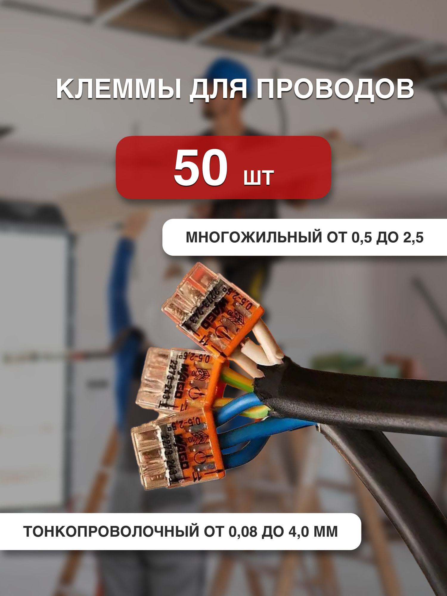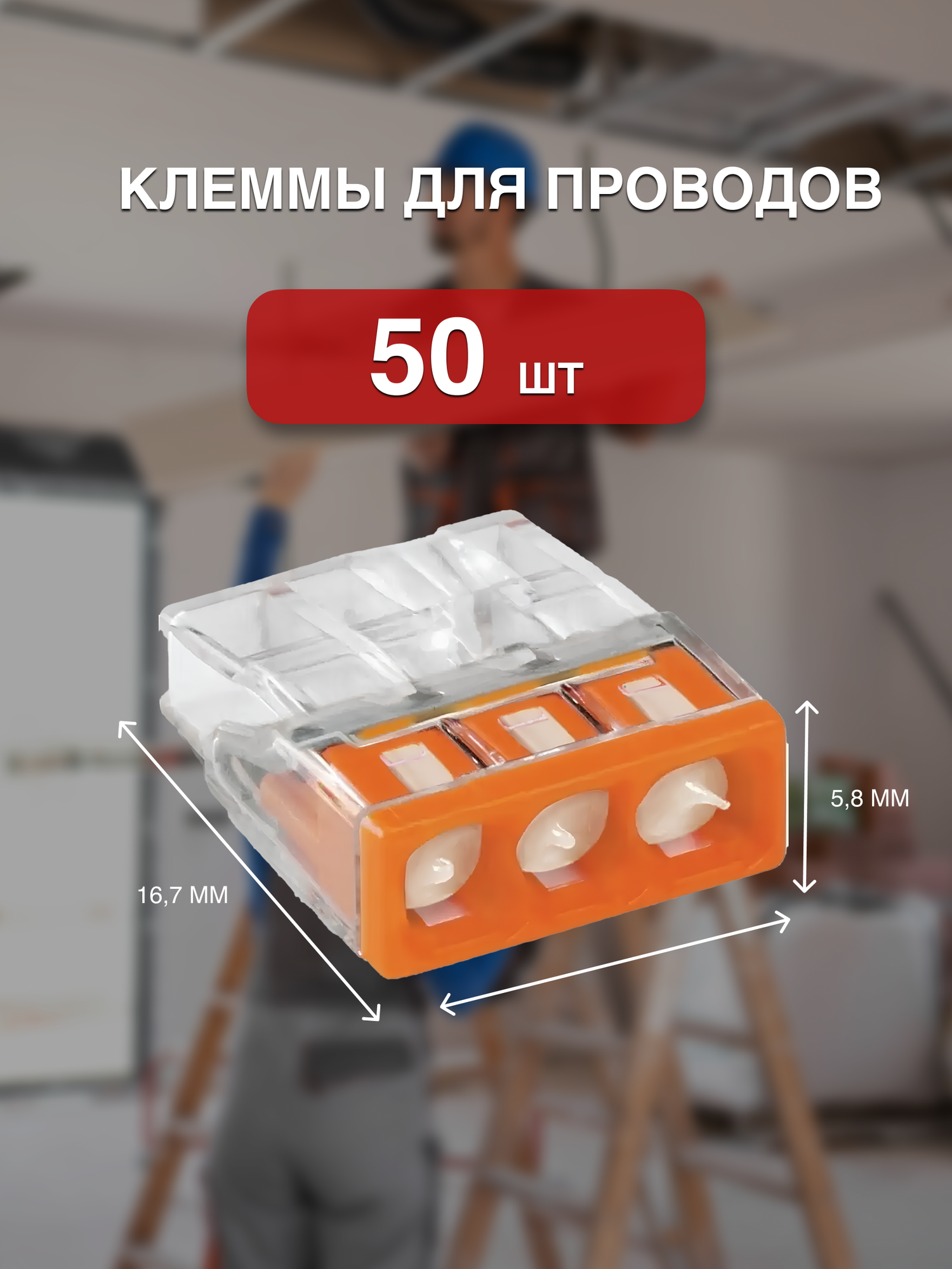Клеммы для проводов зажимные, клемма 222-412 Электро (Аналог Wago/ ваго) - 50 шт