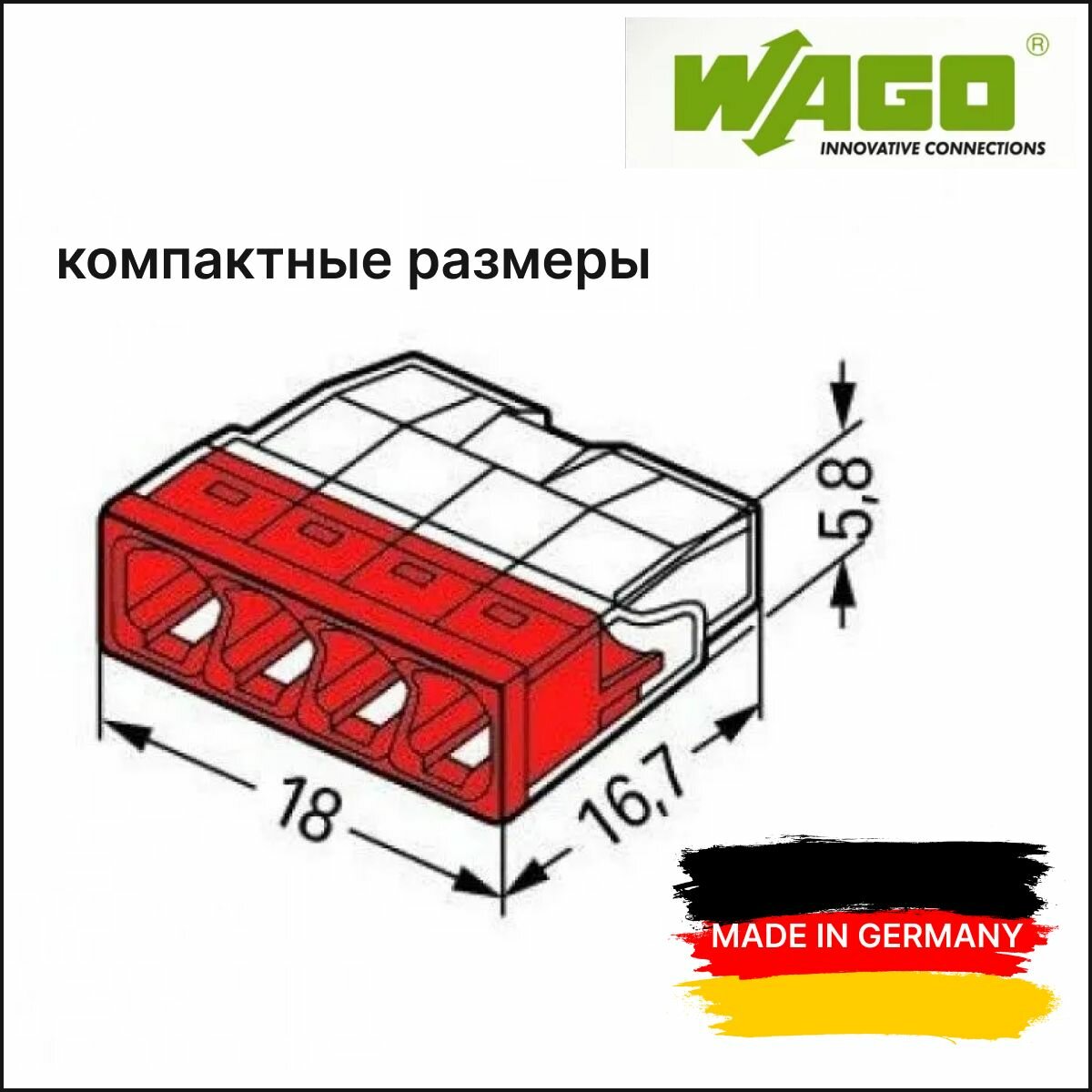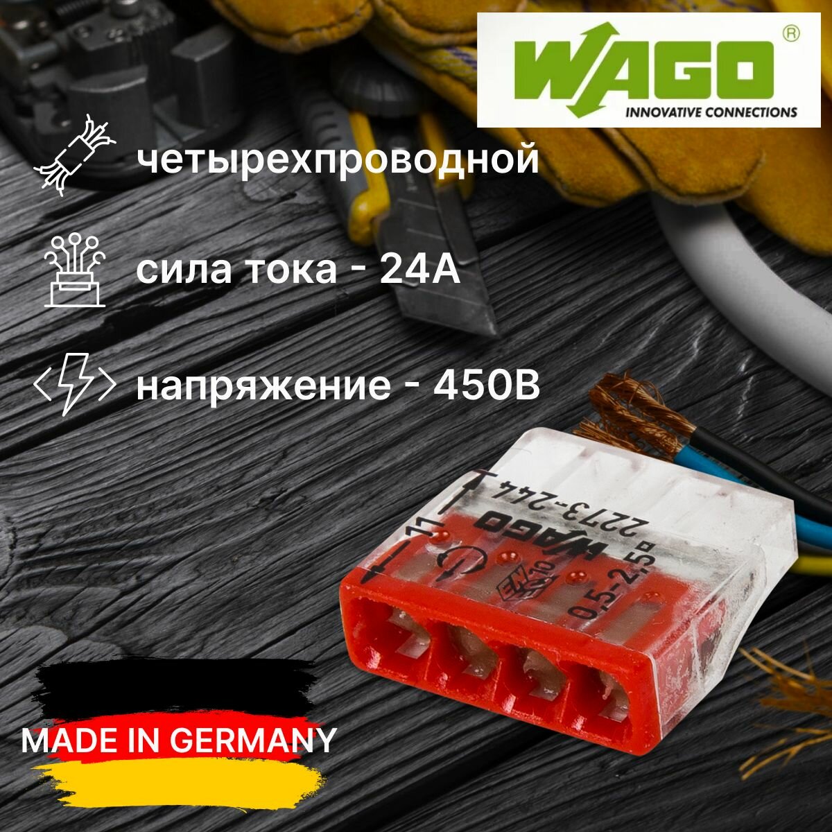Wago 2273-244 Экcпресс-клемма с пастой, 4-проводная до 2,5 мм², (100 шт./уп.) WAGO