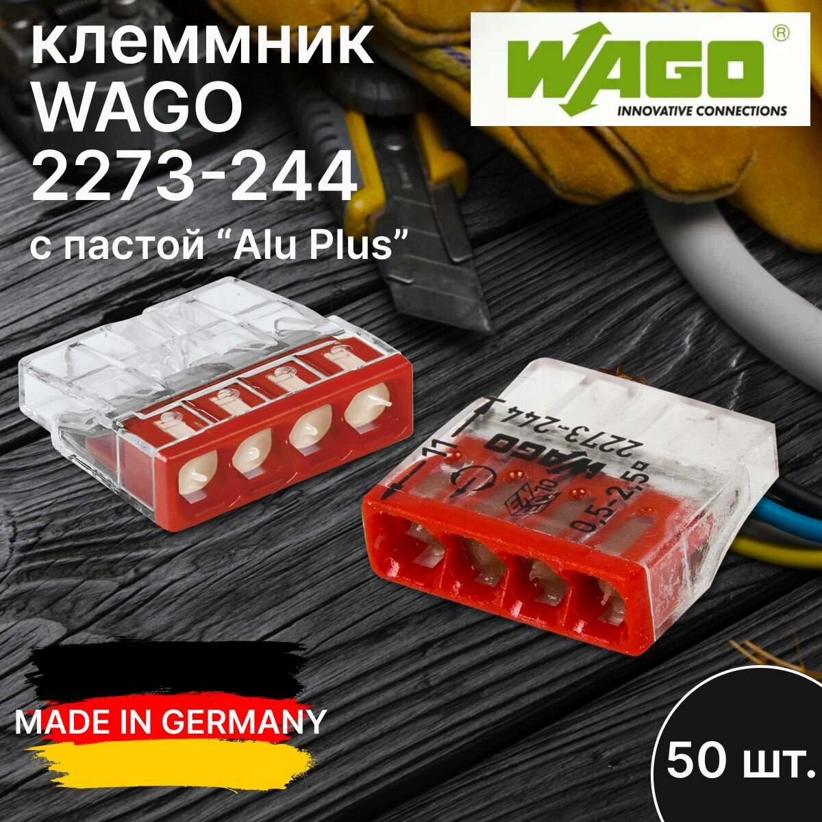 Клеммы Wago 2273-244 с контактной пастой, 4 контакта, 100 шт.