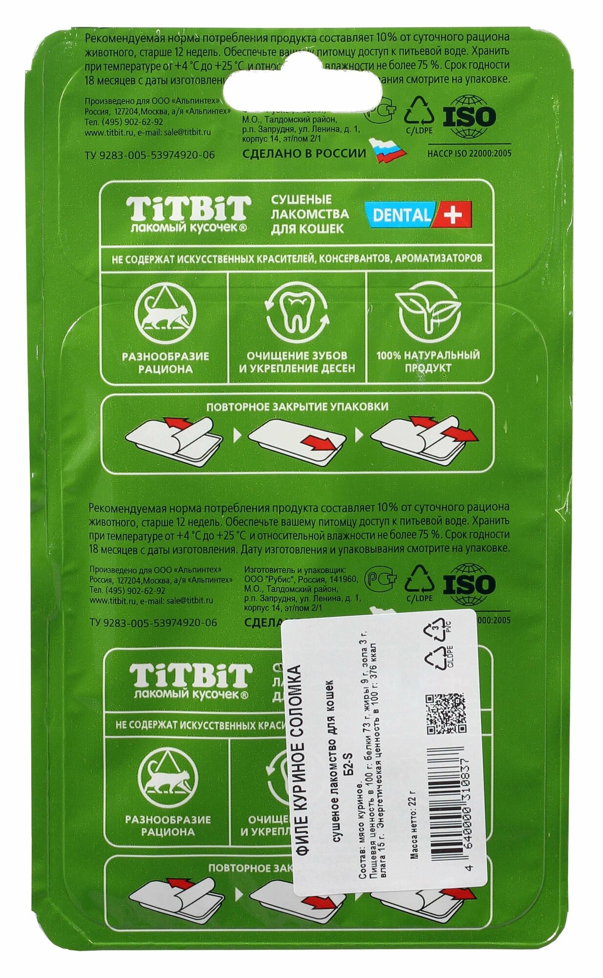 ТитБит Филе куриное (соломка) для кошек -Б2-S 22гр интересное: