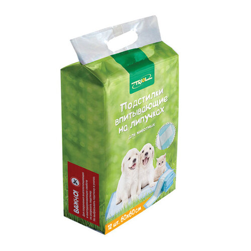 Подстилки для животных впитывающие Triol, 60*60 см, 12 шт, на липучках
