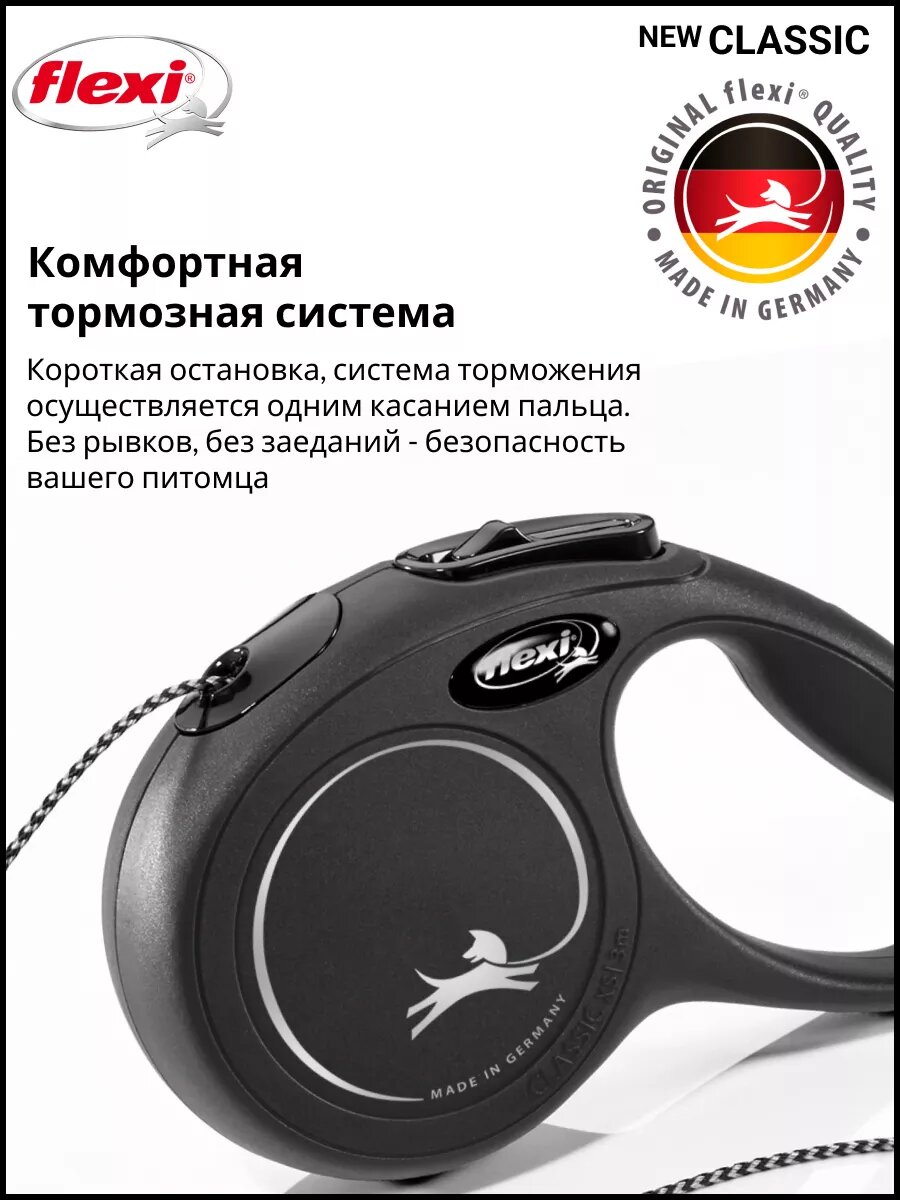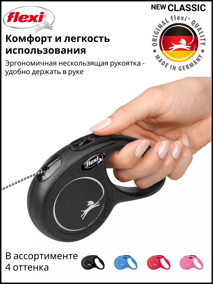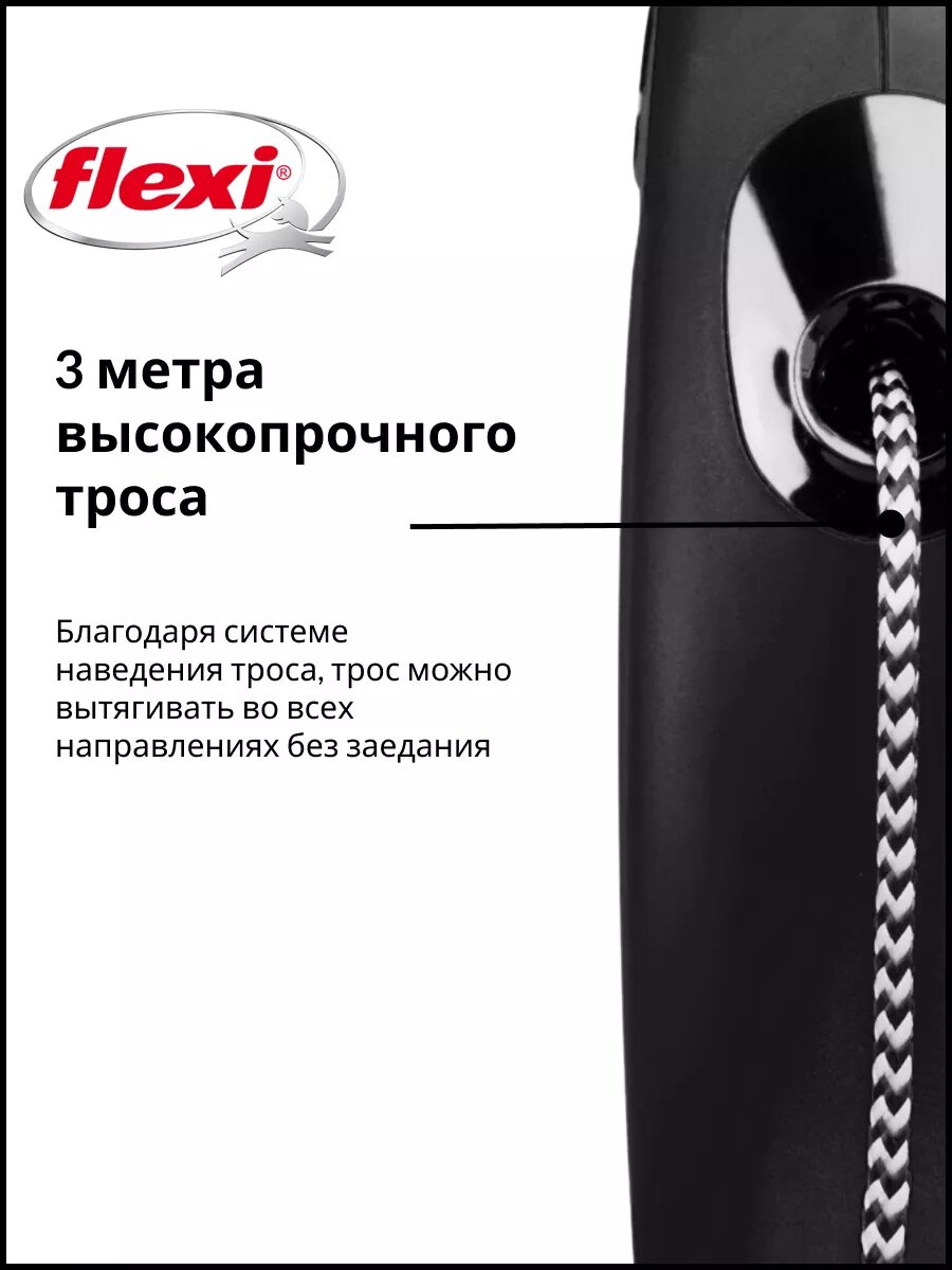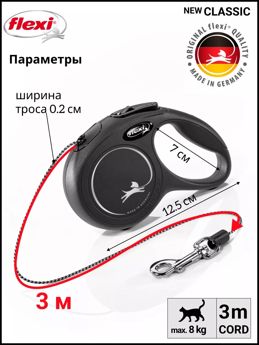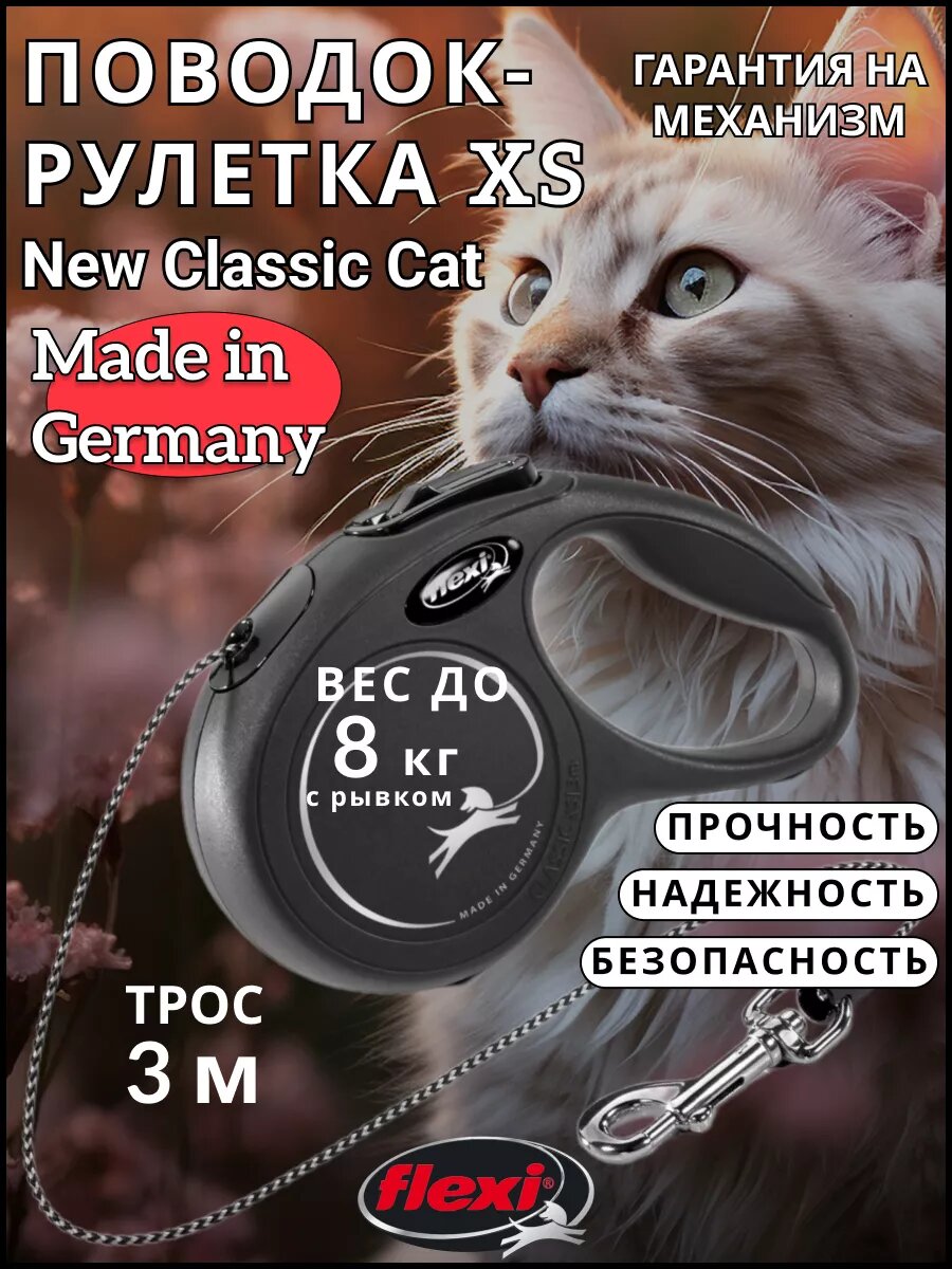 Купить Поводок-рулетка Flexi New Classic CAT cord XS, 3 м, 8 кг, черный